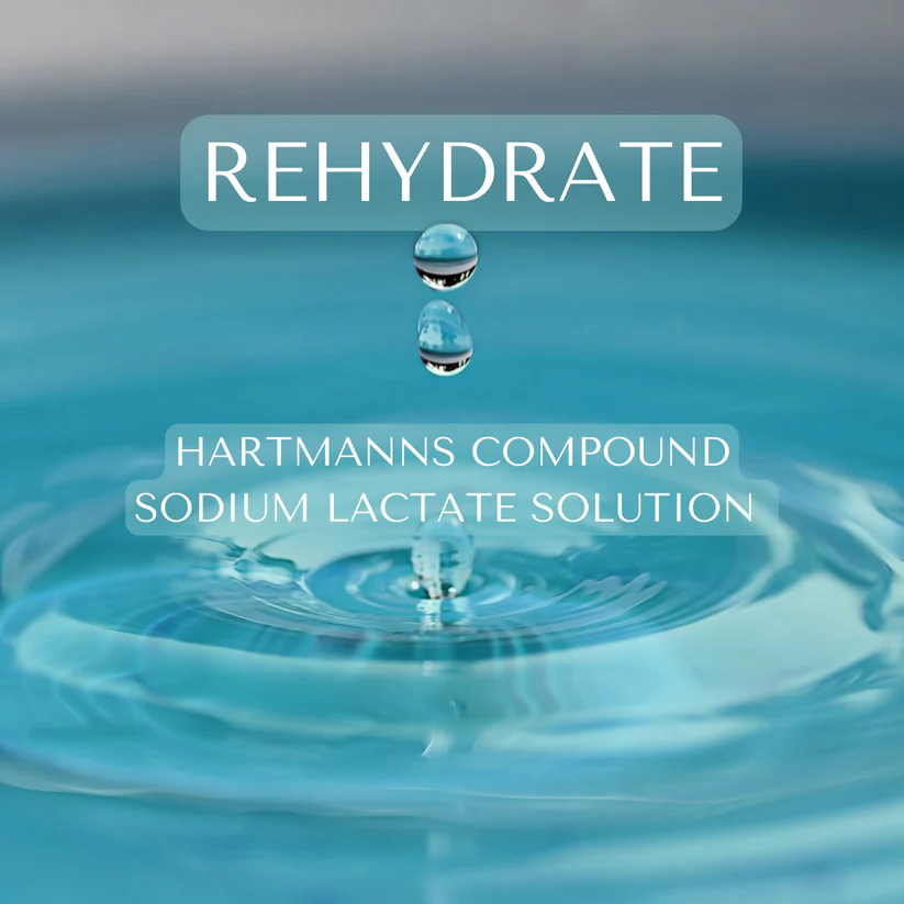 Enhance your infusion with an additional 1000mL of Hartmann’s solution for deeper hydration and improved fluid replenishment. This balanced electrolyte solution supports optimal hydration, circulation and recovery, making it ideal for those needing extra fluid support after illness, travel, intense training or dehydration.